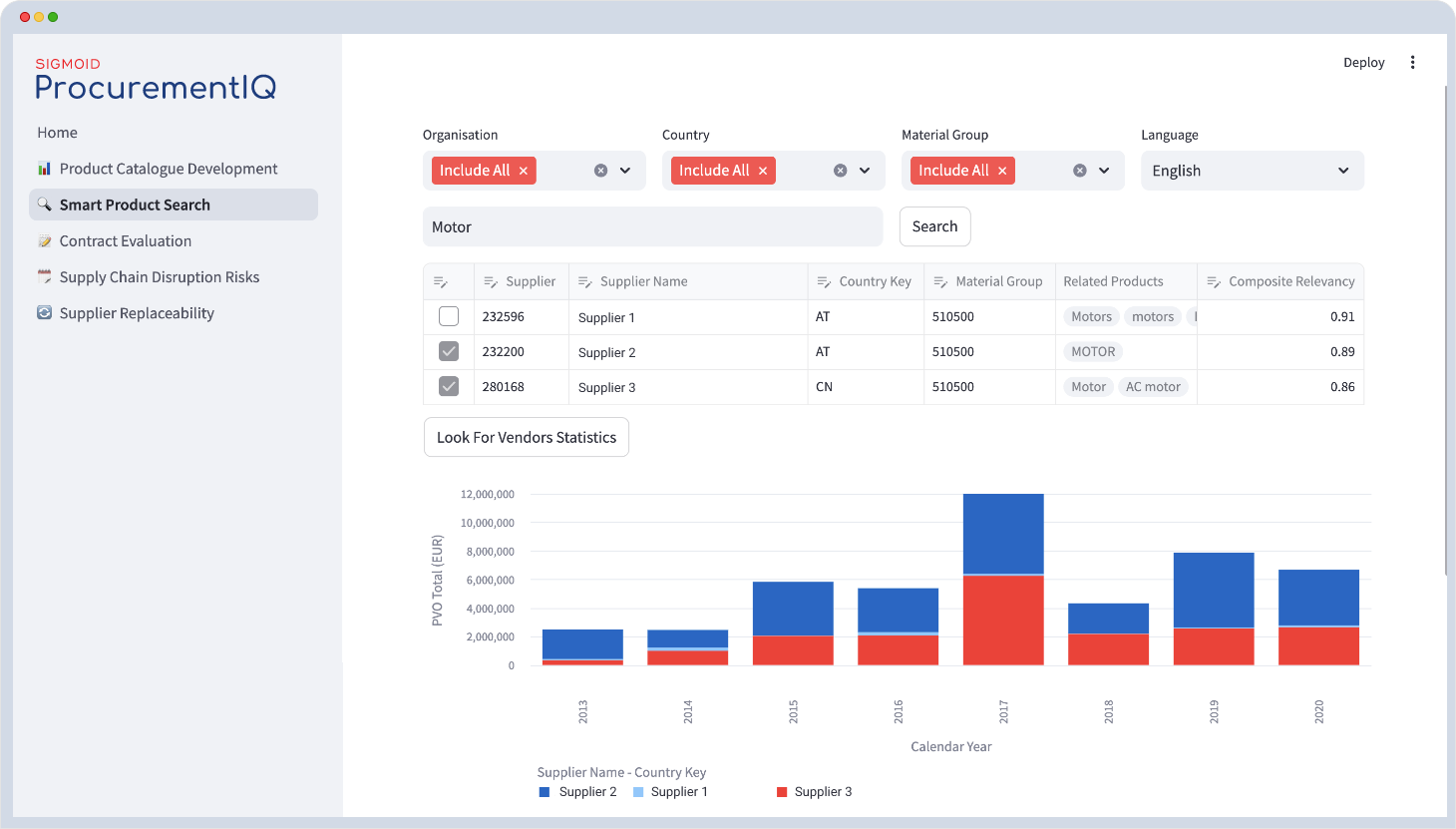 Unprecedented disruptions create uncertainty in day-to-day business and supply operations. Procurement analytics helps mitigate these challenges by simulating supply exception scenarios and offering resolutions that can be rapidly operationalized. Sigmoid ProcurementIQ simplifies processes and maximizes efficiency by interpreting procurement data from various internal and external sources to support material planning, supplier relationship management, and risk optimization. Drive cost savings, maintain regulatory adherence, and empower procurement teams to make smarter decisions and facilitate uninterrupted production.