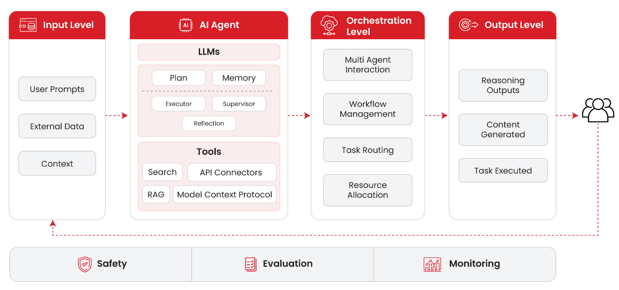 Our frameworks strengthen monitoring and orchestration, ensuring Agentic systems operate safely and consistently. Benefit from resilient, self-healing AI environments supported by AIOps.